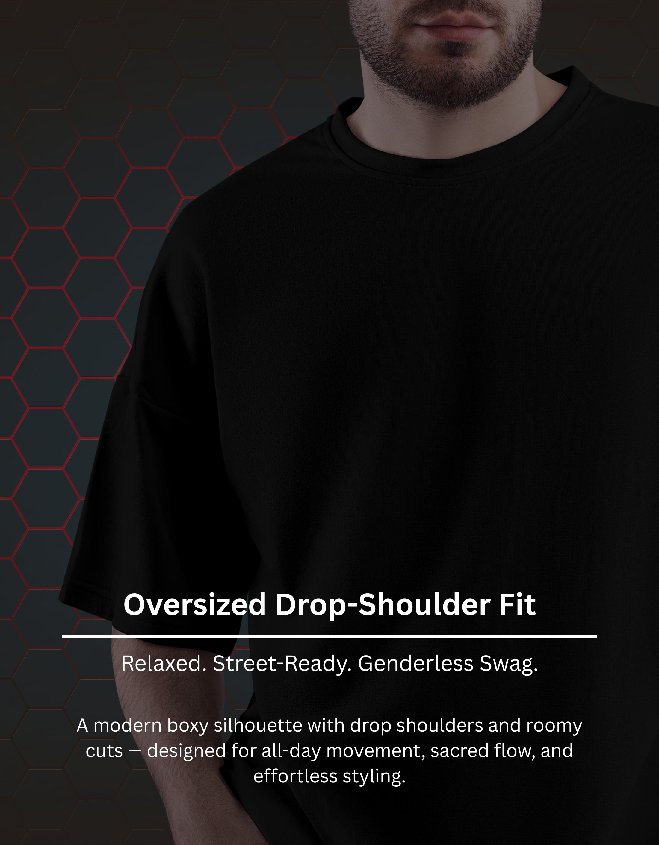Crafted from 240 GSM super-combed cotton, the Guardians of Dharma tee strikes the perfect balance between softness and structure. Its oversized fit with drop shoulders adds effortless streetwear cool while preserving a grounded sacred aura.